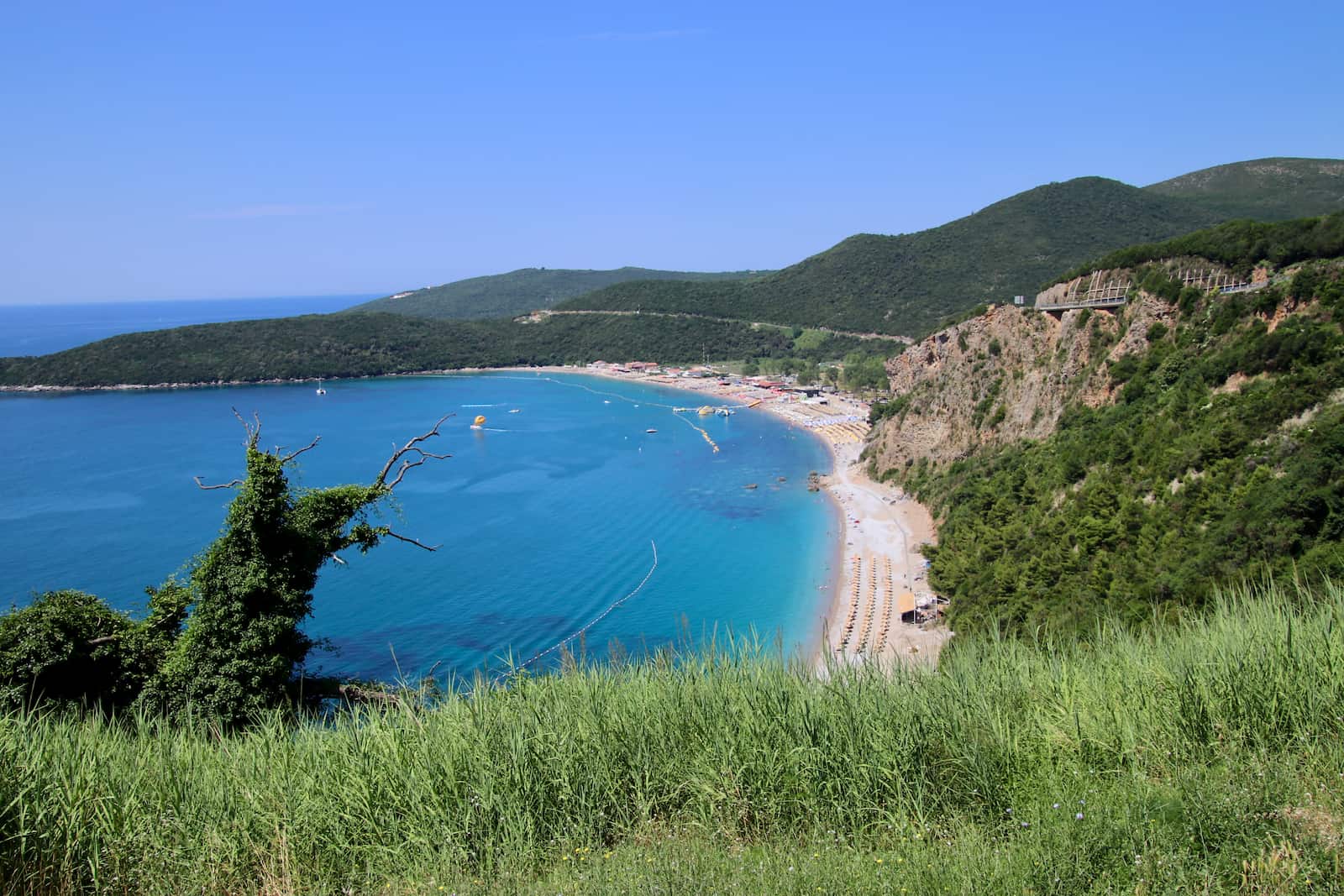 Départ en voiture pour la côte adriatique et installation à Petrovac, station balnéaire tranquille.